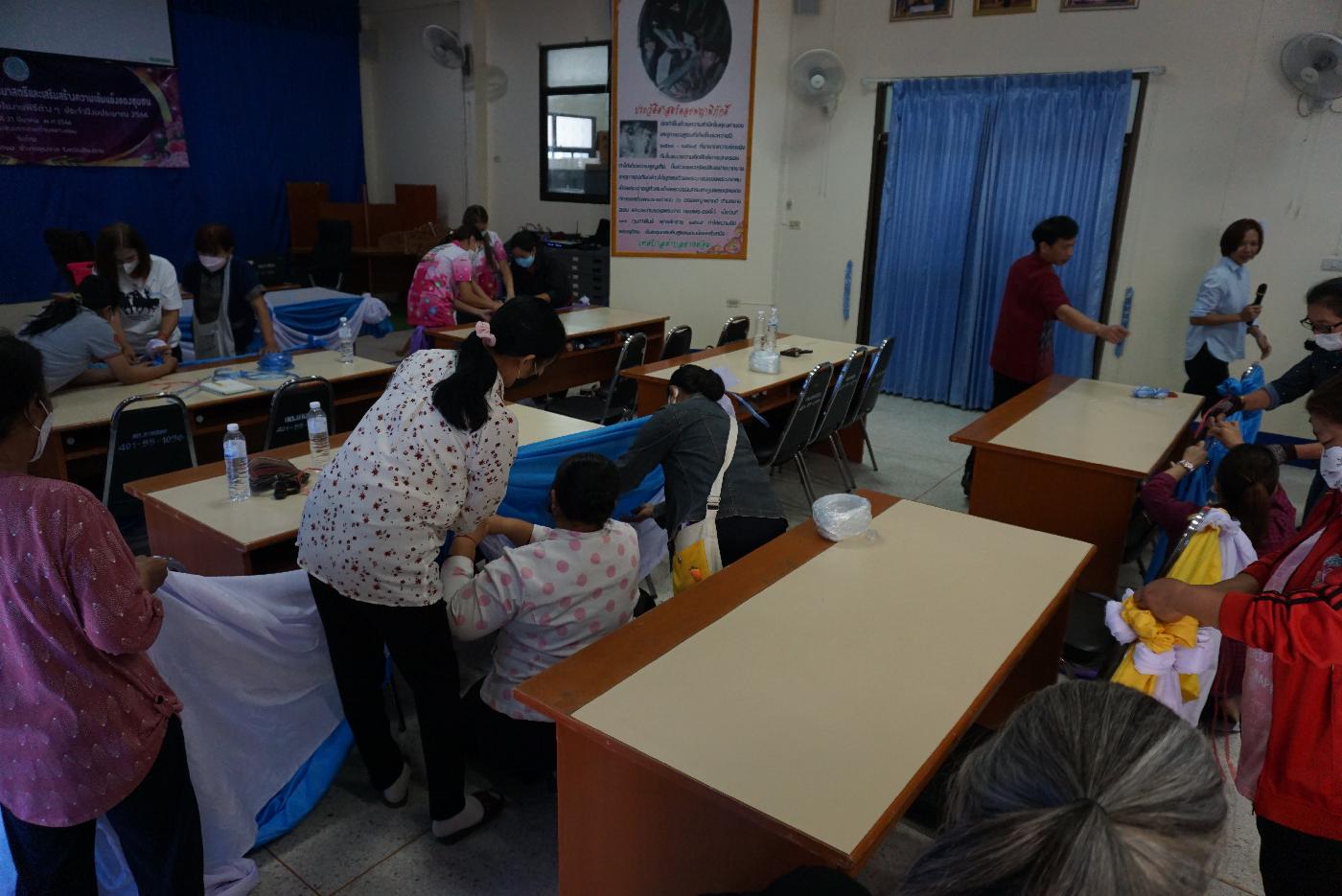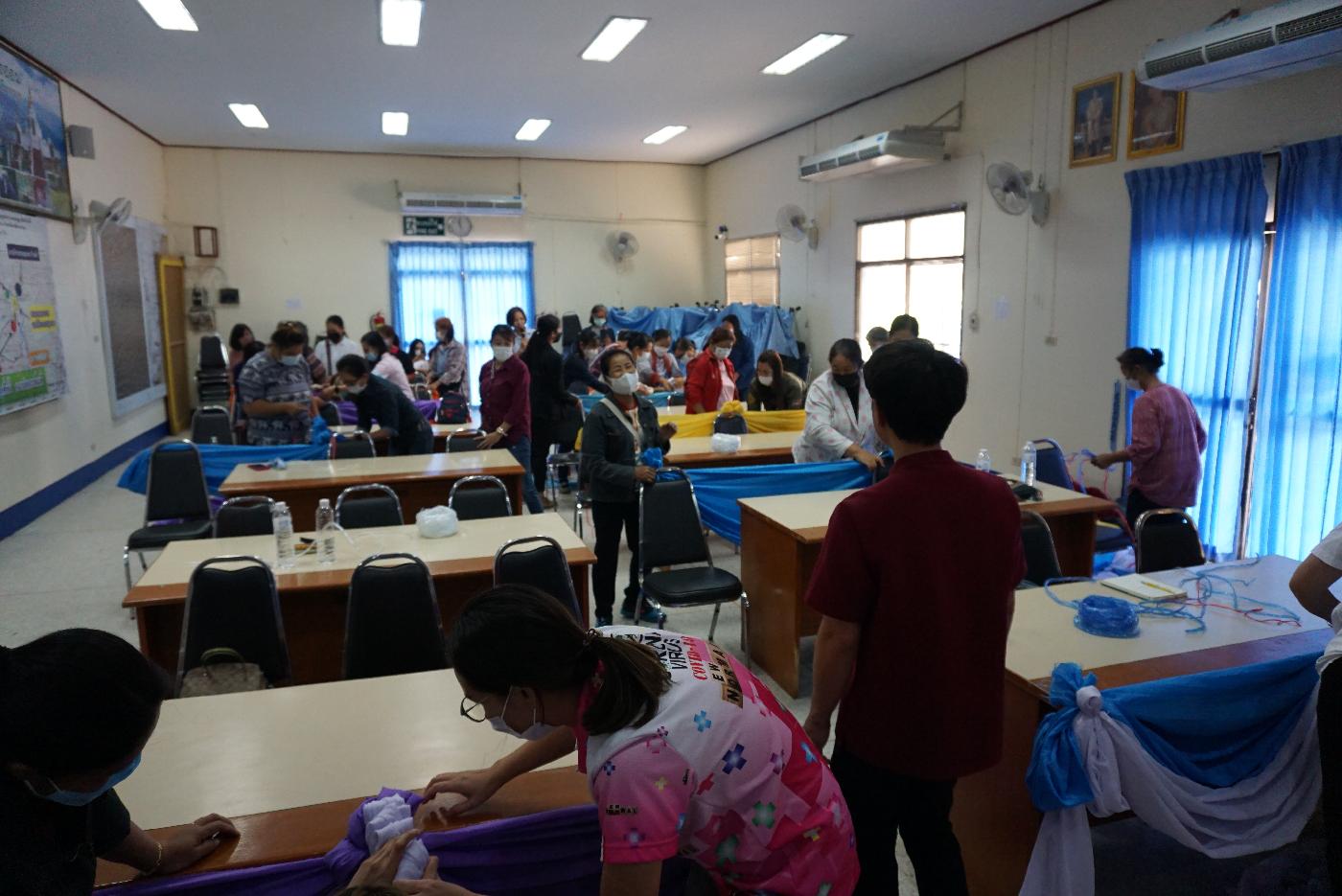 โครงการพัฒนาศักยภาพกลุ่มพัฒนาสตรีและเสริมสร้างความเข็มแข็งของชุมชนกิจกรรมการผูกผ้าและจับจีบผ้าในงานพิธีต่างๆ ประจำปีงบประมาณ 2566 วันที่31 มีนาคม 2566 ณ ห้องประชุมเทศบาลตำบลยางฮอม