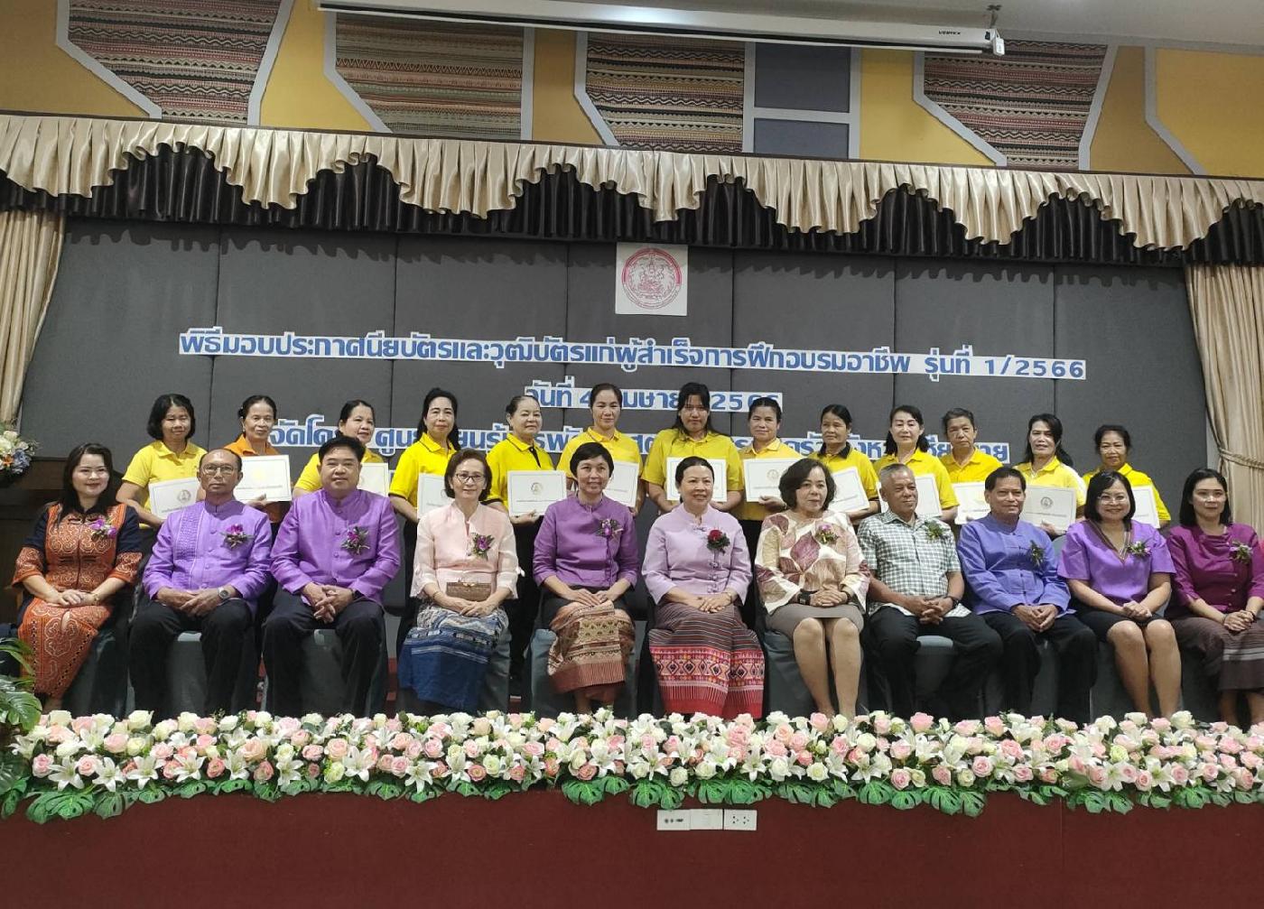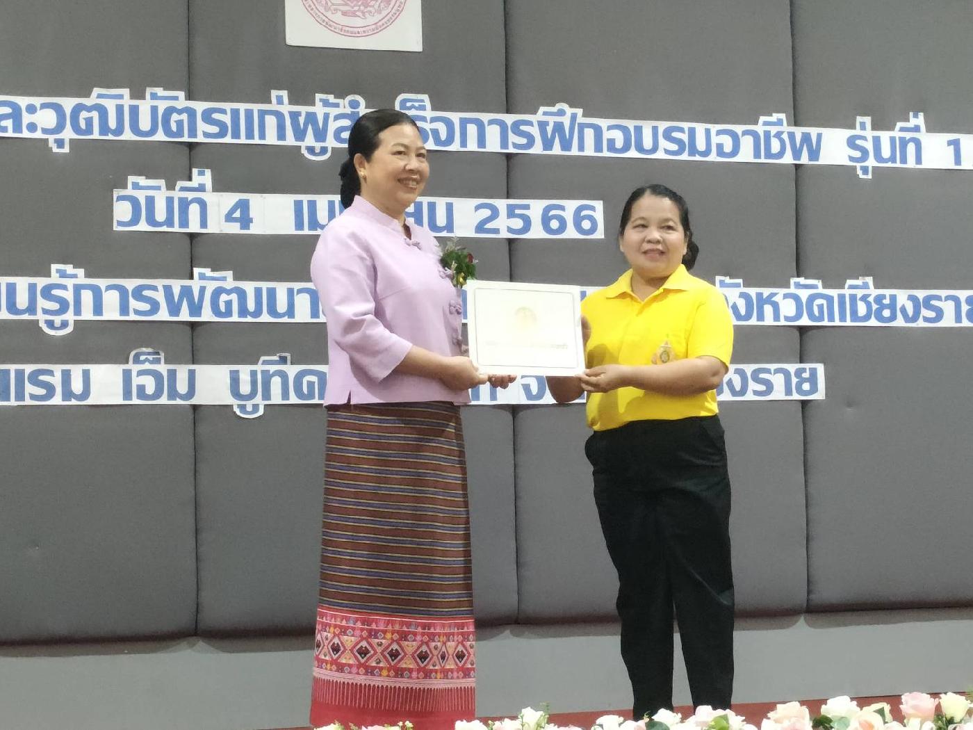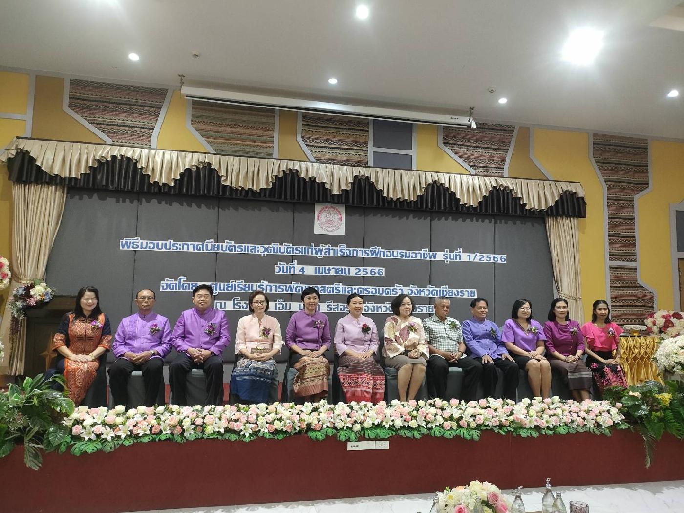 วันอังคารที่ 4 เม.ย.66 นางลาวรรญ ธนรุ่งเรืองเดช นายกเทศมนตรีตำบลยางฮอม มอบหมายให้นายพร คำปัน รองนายกฯ เป็นตัวแทนร่วมเป็นเกียรติในพิธีมอบประกาศนียบัตรและวุฒิบัตรแก่ผู้สำเร็จการฝึกอบรมอาชีพ ศูนย์เรียนรู้พัฒนาสตรีและครอบครัว จังหวัดเชียงราย ณ รร.เอ็ม บูทีครีสอร์ท จ.เชียงราย