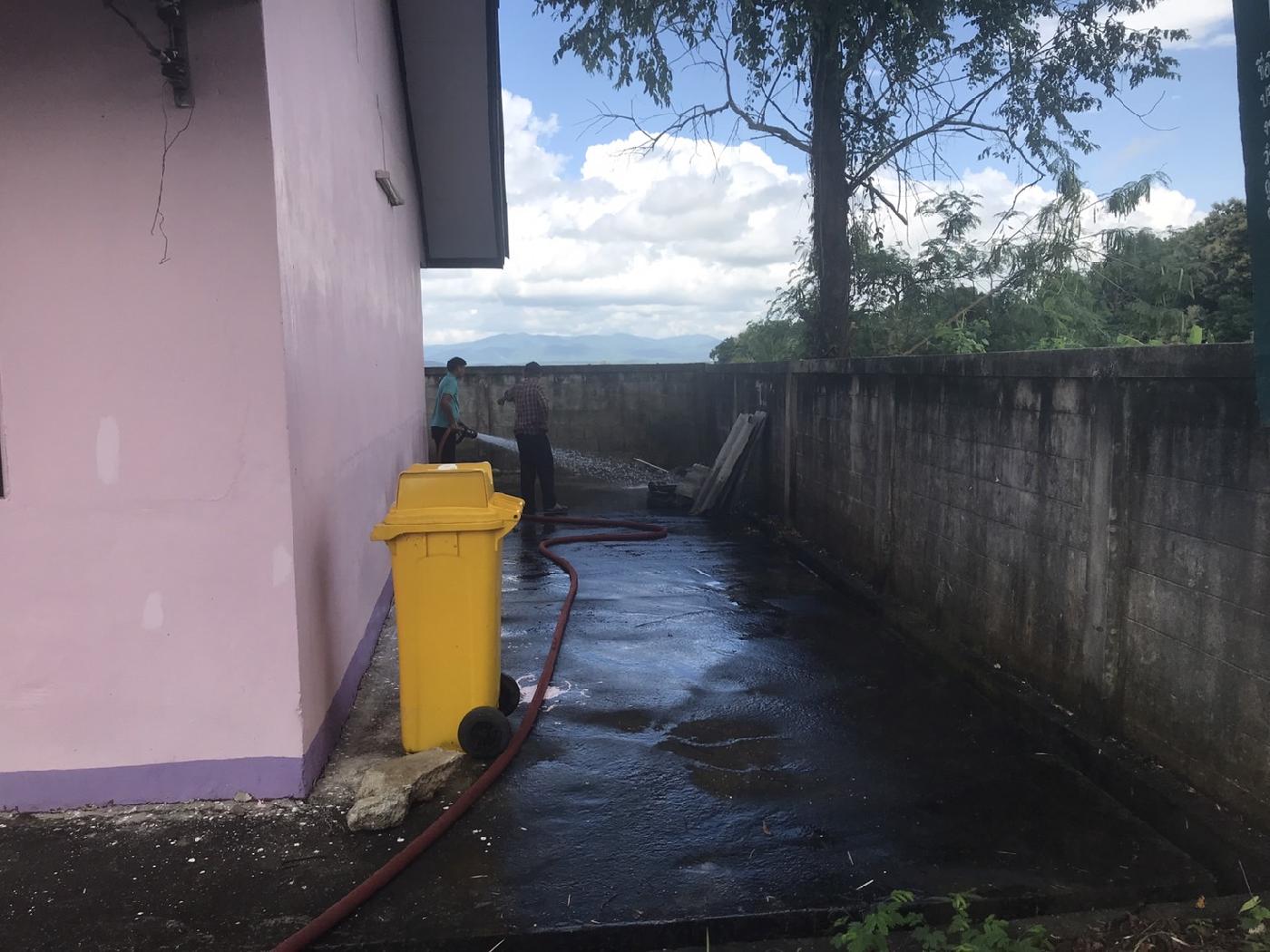 นางลาวรรญ ธนรุ่งเรืองเดช นายกเทศมนตรีตำบลยางฮอม ได้มอบหมายให้ เจ้าหน้าที่งานป้องกันและบรรเทาสาธารณภัยเทศบาลตำบลยางฮอม นำรถบรรทุกน้ำ ช่วยล้างทำความสะอาดลานอเนกประสงค์บริเวณหอประชุมหมู่บ้าน บ้านใหม่พัฒนา หมู่ที่10 เพื่อจัดงานกิจกรรม มอบเงินพระราชขวัญถุงกองทุนแม่ของแผ่นดิน ในวันจันทร์ ที่ 9 ตุลาคม 2566