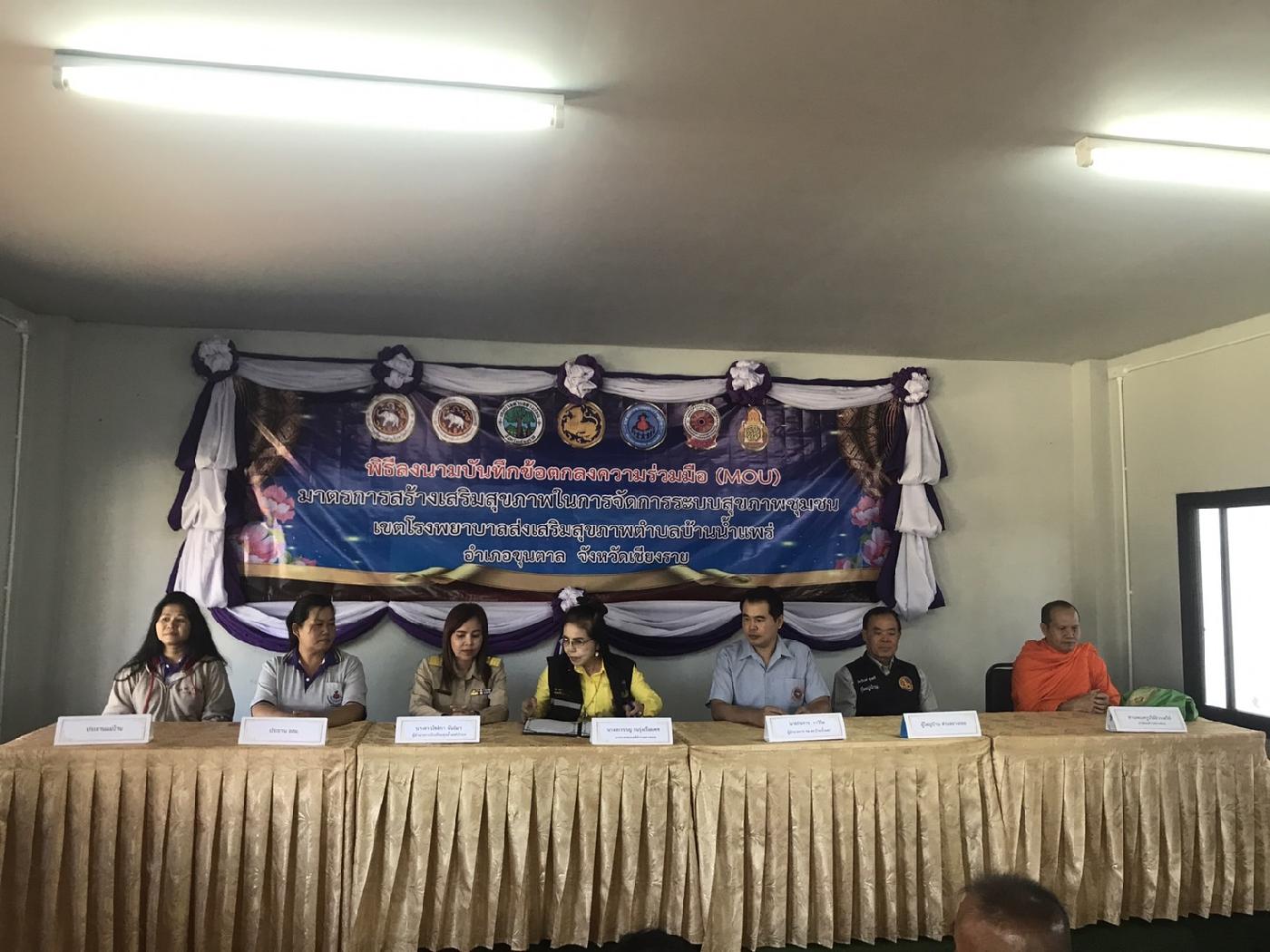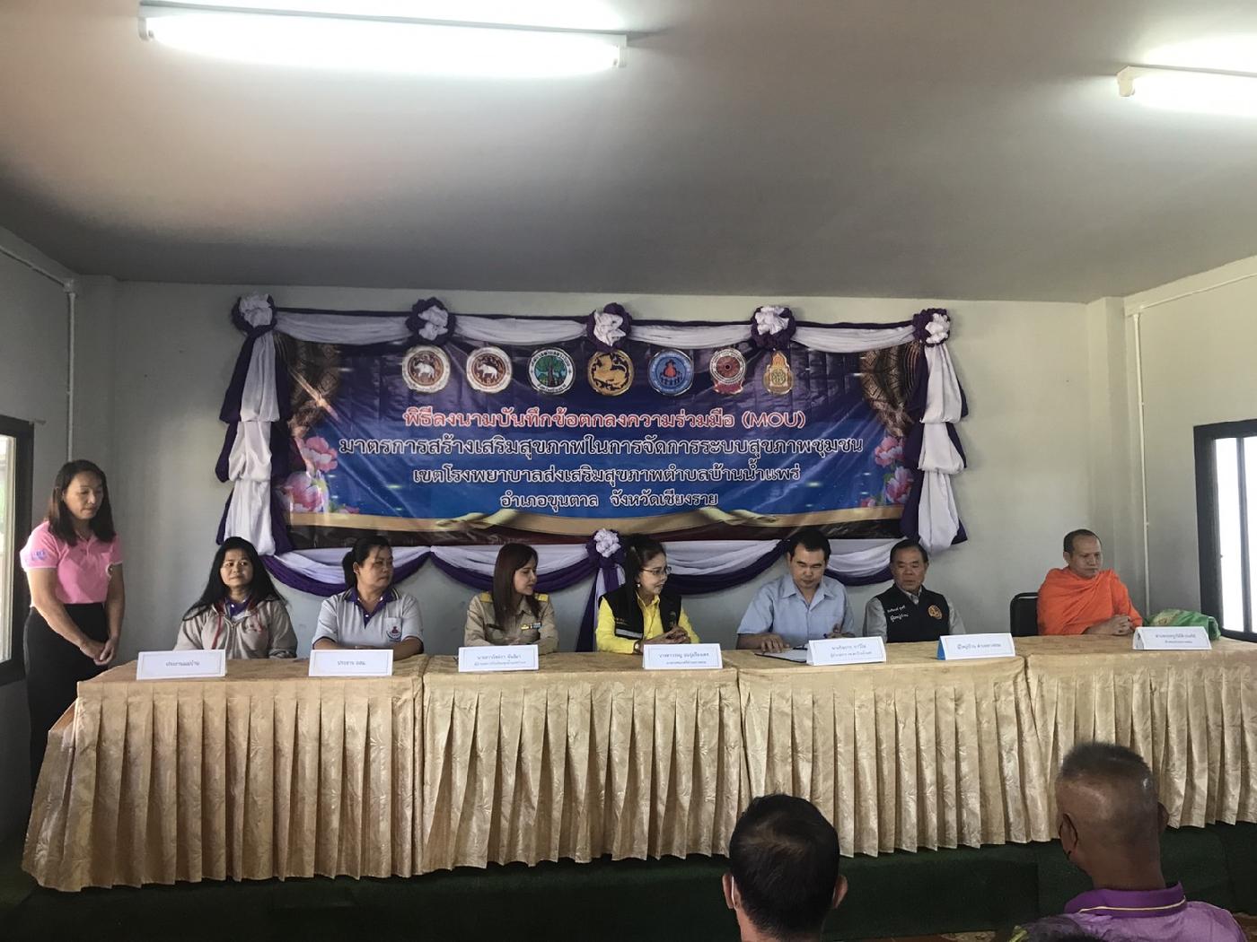 วันจันทร์ ที่ 20 พฤศจิกายน 2566 นางลาวรรญ ธนรุ่งเรืองเดช นายกเทศมนตรีตำบลยางฮอม ร่วมพิธีลงนามบันทึกข้อตกลงความร่วมมือ(MOU) มาตรการสร้างเสริมสุขภาพในการจัดการระบบสุขภาพชุมชน เขตโรงพยาบาลส่งเสริมสุขภาพตำบลบ้านน้ำแพร่