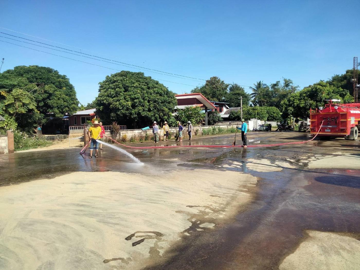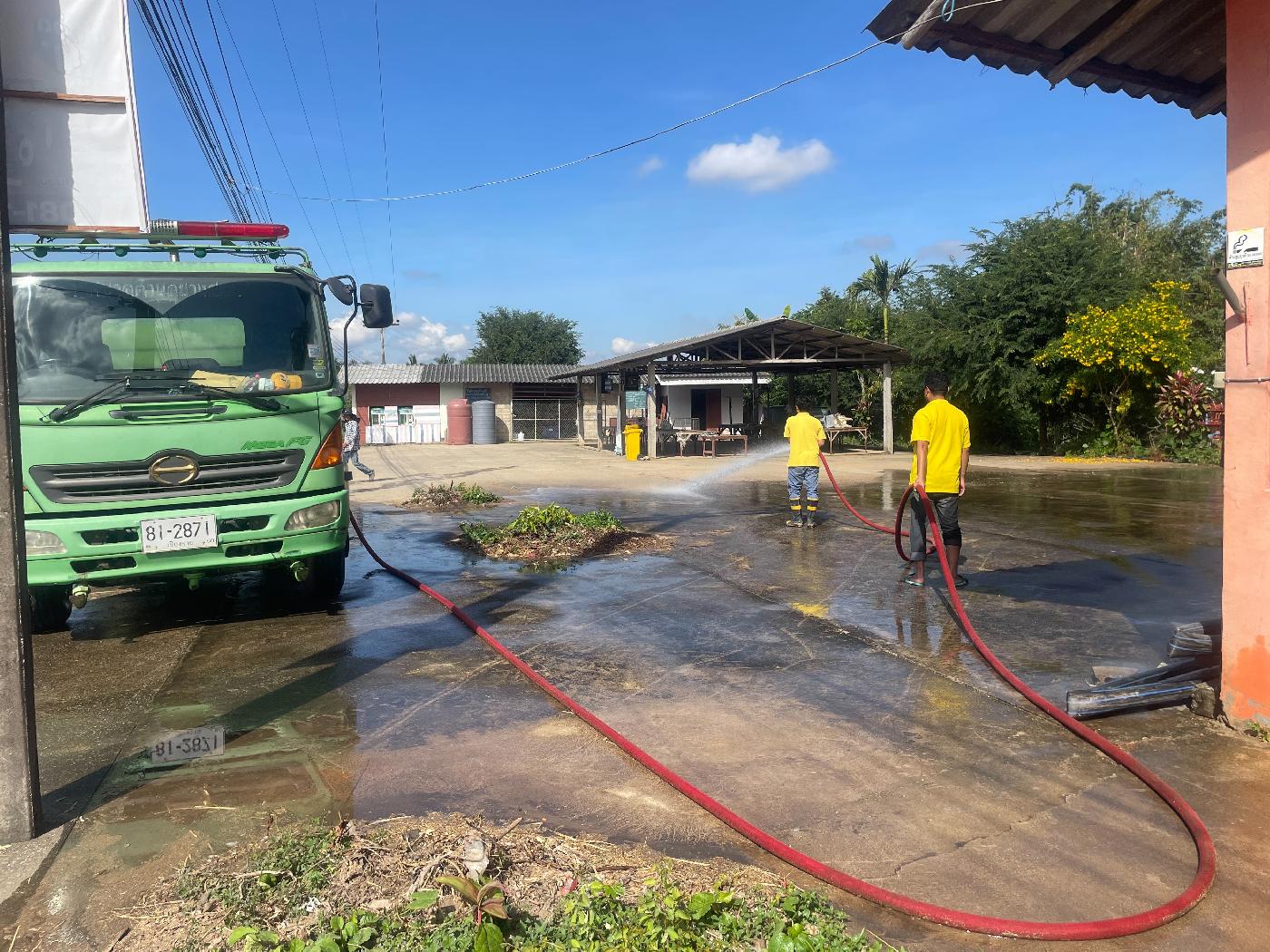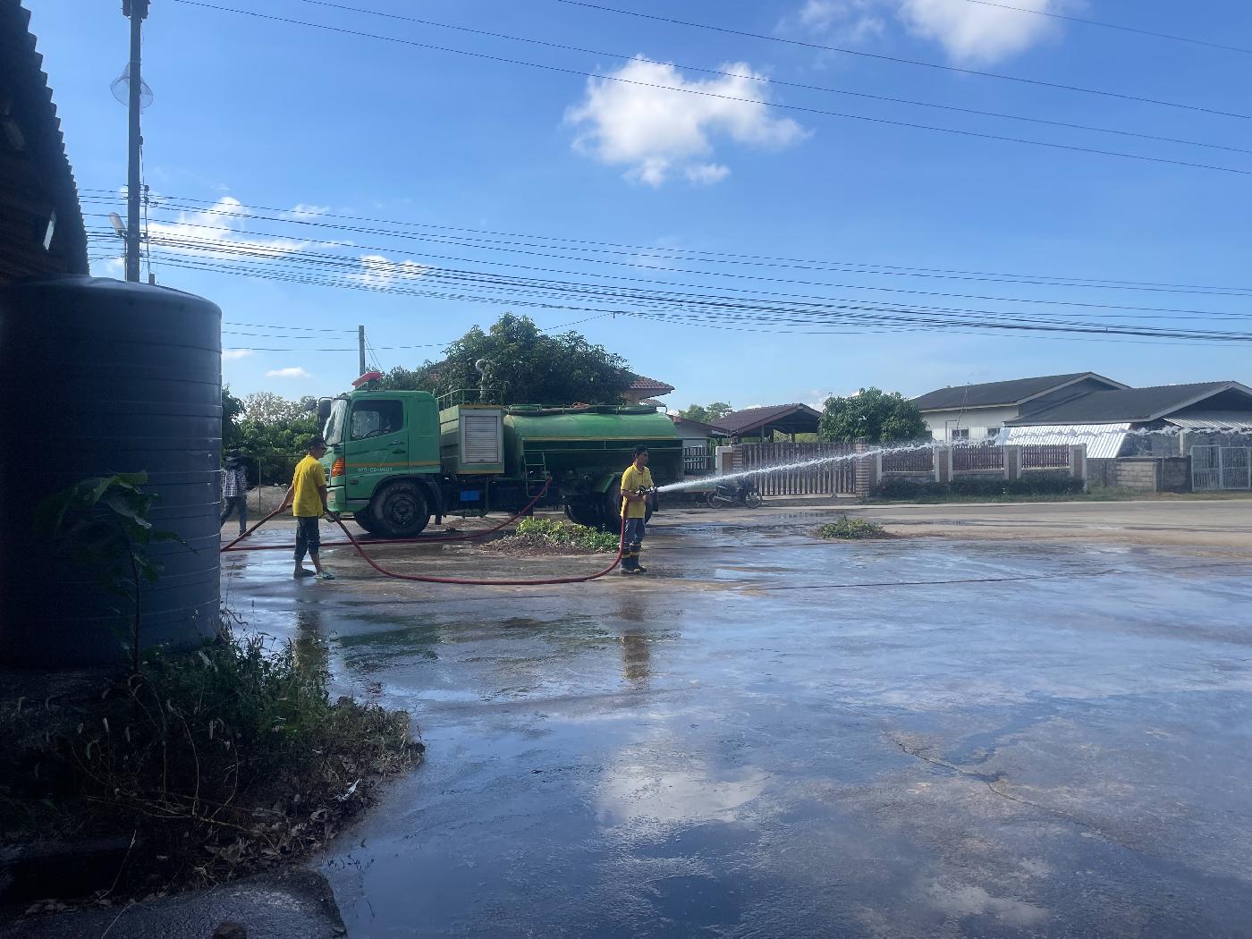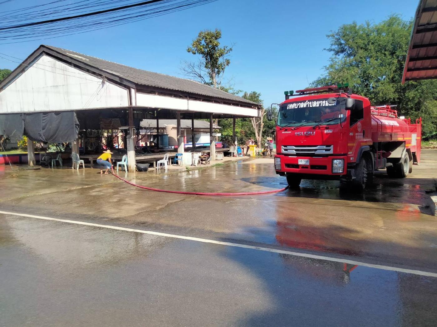 วันจันทร์ ที่ 4 ธันวาคม 2566 นางลาวรรญ ธนรุ่งเรืองเดช นายกเทศมนตรีตำบลยางฮอม มอบหมายให้เจ้าหน้าที่ป้องกันและบรรเทาสาธารณภัยเทศบาลตำบลยางฮอม นำรถบรรทุกน้ำดับเพลิงมาล้างลานทำความสะอาดบริเวณหอประชุมและลานอเนกประสงค์หมู่บ้านบ้านห้วยสักหมู่ที่ 9และหมู่ที่15