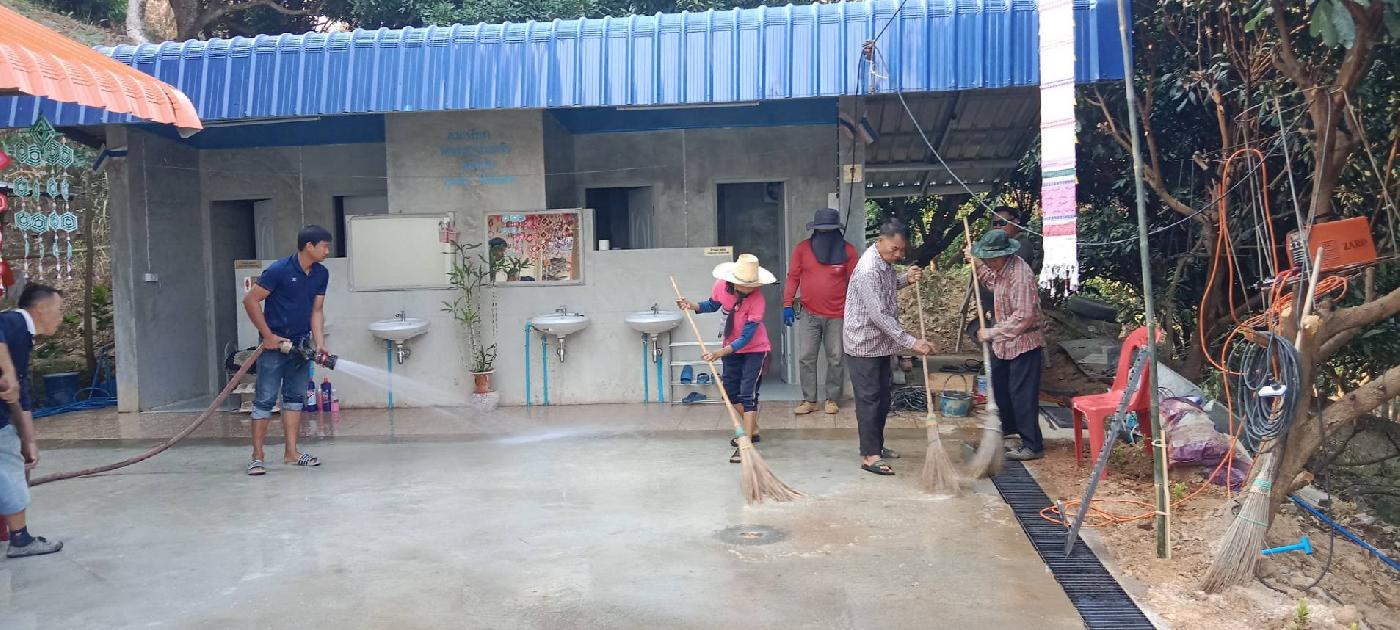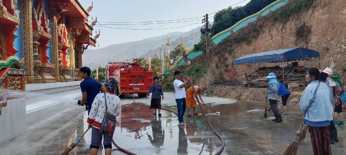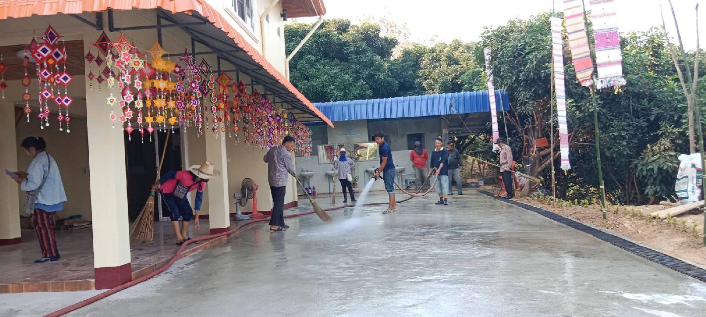 ล้างทำความสะอาดบริเวณลานวัดกำแพงหิน บ้านน้ำแพร่ใต้ หมู่ที่19