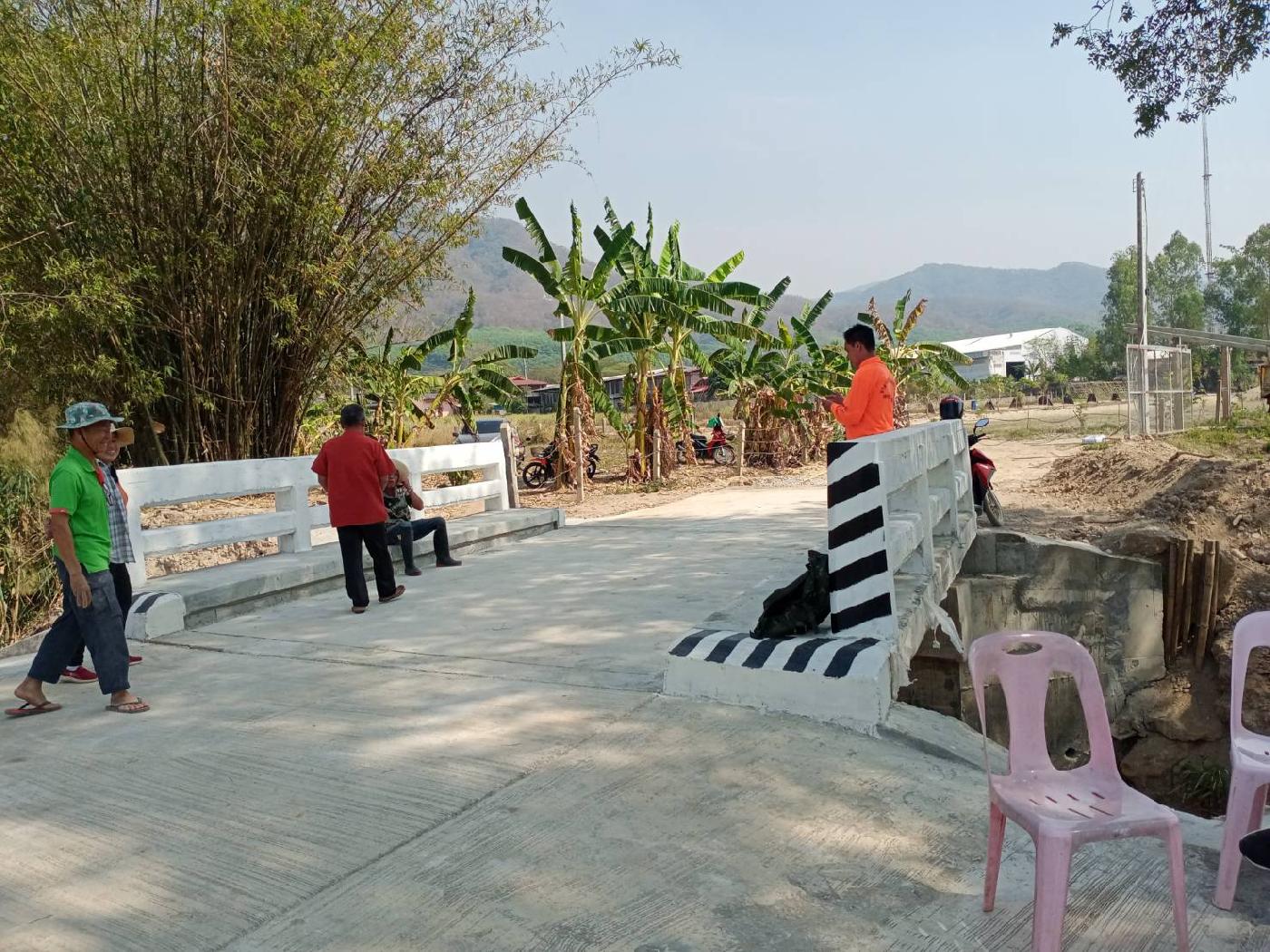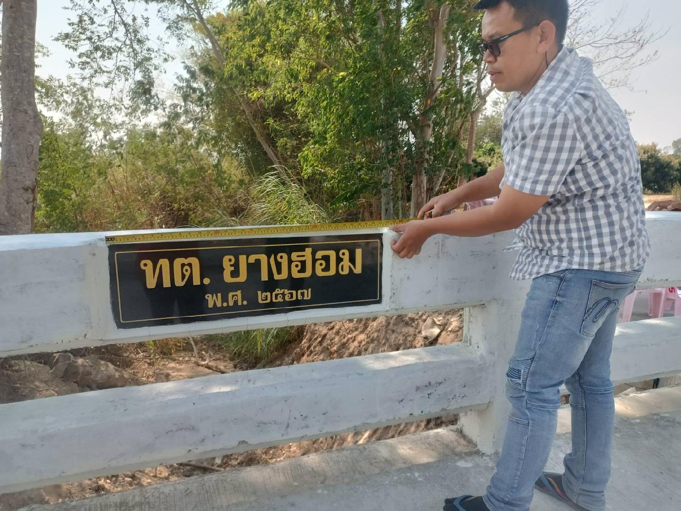 งานจ้างก่อสร้างสะพานคอนกรีตเสริมข้ามห้วยลึก (ค่ายเม็งกาโต) บ้านยางฮอม หมู่ที่ 12