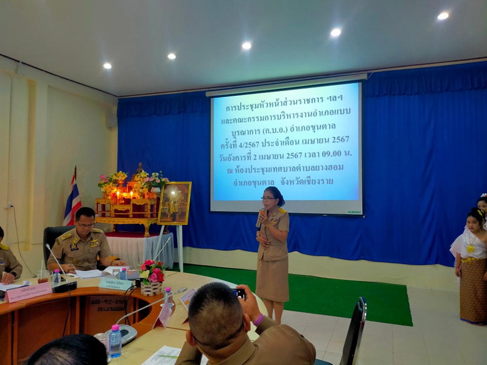 เทศบาลตำบลยางฮอม โดยการบริหารงานของ นางลาวรรญ ธนรุ่งเรืองเดช นายกเทศมนตรีตำบลยางฮอม ได้รับเกียรติจากทางอำเภอขุนตาล จัดการประชุมหัวหน้าส่วนราชการ ฯลฯ และคณะกรรมการบริหารงานอำเภอแบบบูรณาการ (ก.บ.อ.) อำเภอขุนตาล ครั้งที่ 4/2567 ประจำเดือน เมษายน 2567 วันอังคารที่ 2 เมษายน 2567 เวลา 09.00 น. ณ ห้องประชุมเทศบาลตำบลยางฮอม อำเภอขุนตาล จังหวัดเชียงราย