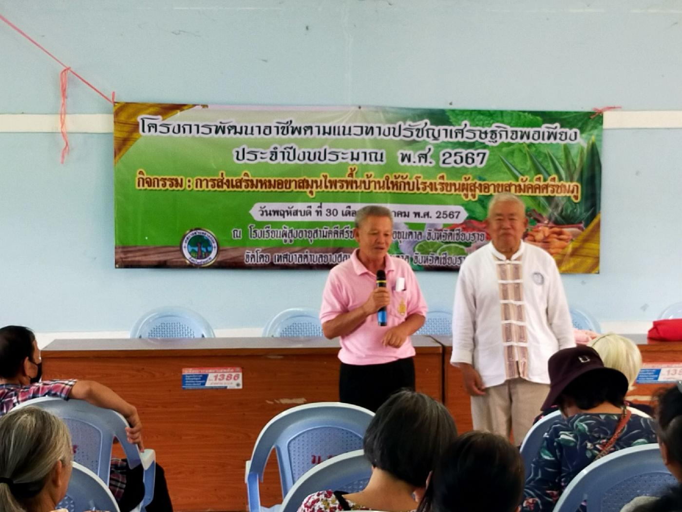 - ท่านลาวรรญ ธนรุ่งเรืองเดช นายกเทศมนตรีตำบลยางฮอมได้มอบหมายให้นายชุมพล ช่างตี เลขานุการฯ พร้อมด้วยนางนงเยาว์ เขื่อนแก้ว หัวหน้าสำนักปลัดเทศบาลและงานพัฒนาชุมชน ได้พบปะและเข้าร่วมกับ กิจกรรมการส่งเสริมหมอยาสมุนไพรพื้นบ้านให้กับโรงเรียนผู้สูงอายุสามัคคีศรีชมภูพร้อมกับให้กำลังใจแก่สมาชิกโรงเรียนผู้สูงอายุสามัคคีศรีชมภูในการเข้าร่วมกิจกรรมดังกล่าว ณ หอประชุมประจำหมู่บ้านชมภู หมู่18