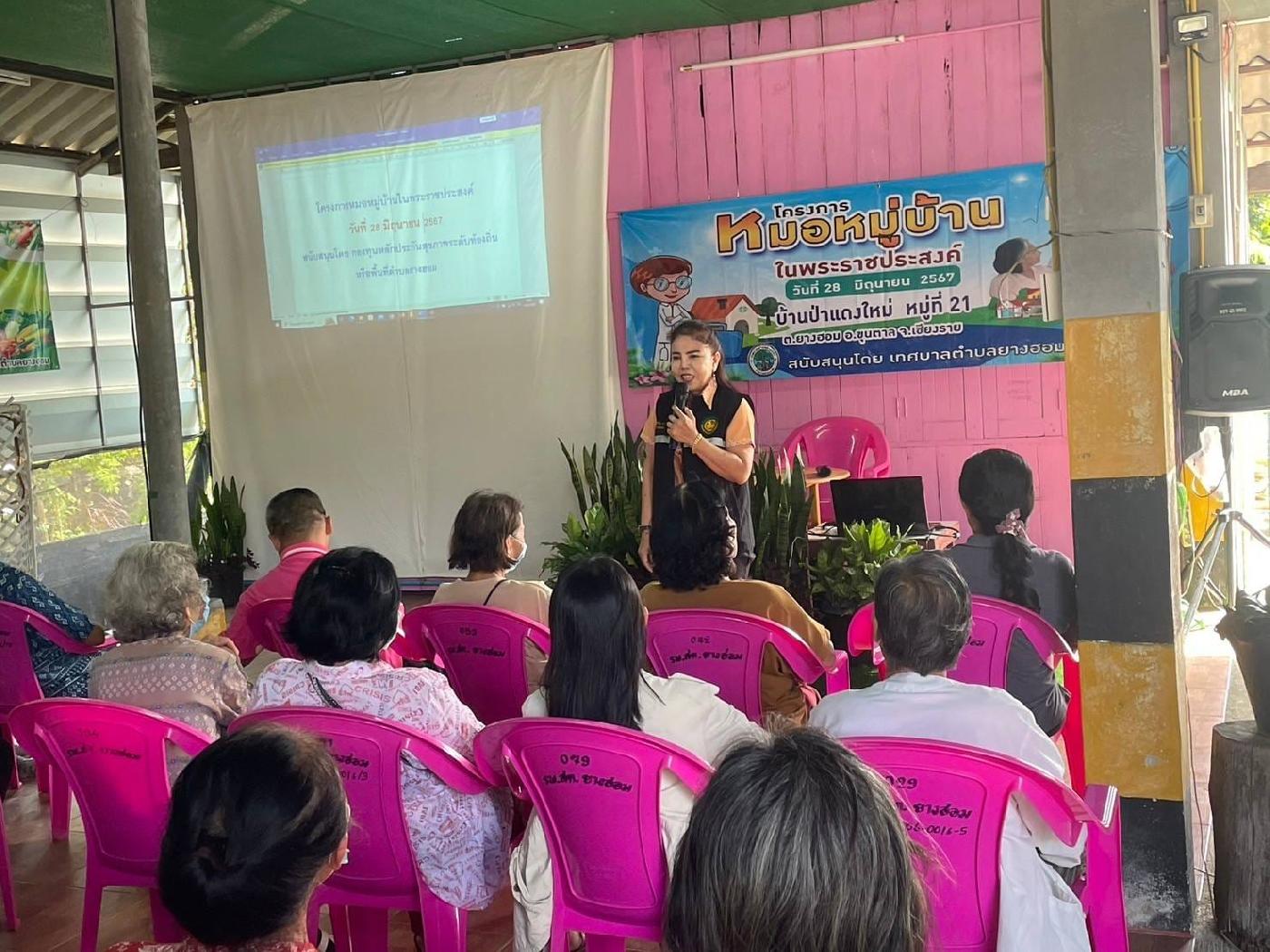 วันพฤหัสบดี ที่ 20 มิ.ย.2567 เวลา 10.00 น.#นางลาวรรญ ธนรุ่งเรืองเดช #นายกเทศมนตรีตำบลยางฮอม เป็นประธานเปิดโครงการพระราชดำริ โดยมีคณะผู้บริหาร เจ้าหน้าที่กองสาธารณสุขและสิ่งแวดล้อม และประชาชนบ้านป่าแดงใหม่ หมู่ 21 เข้าร่วมกิจกรรมในครั้งนี้ ณ โรงพยาบาลส่งเสริมสุขภาพตำบลยางฮอม