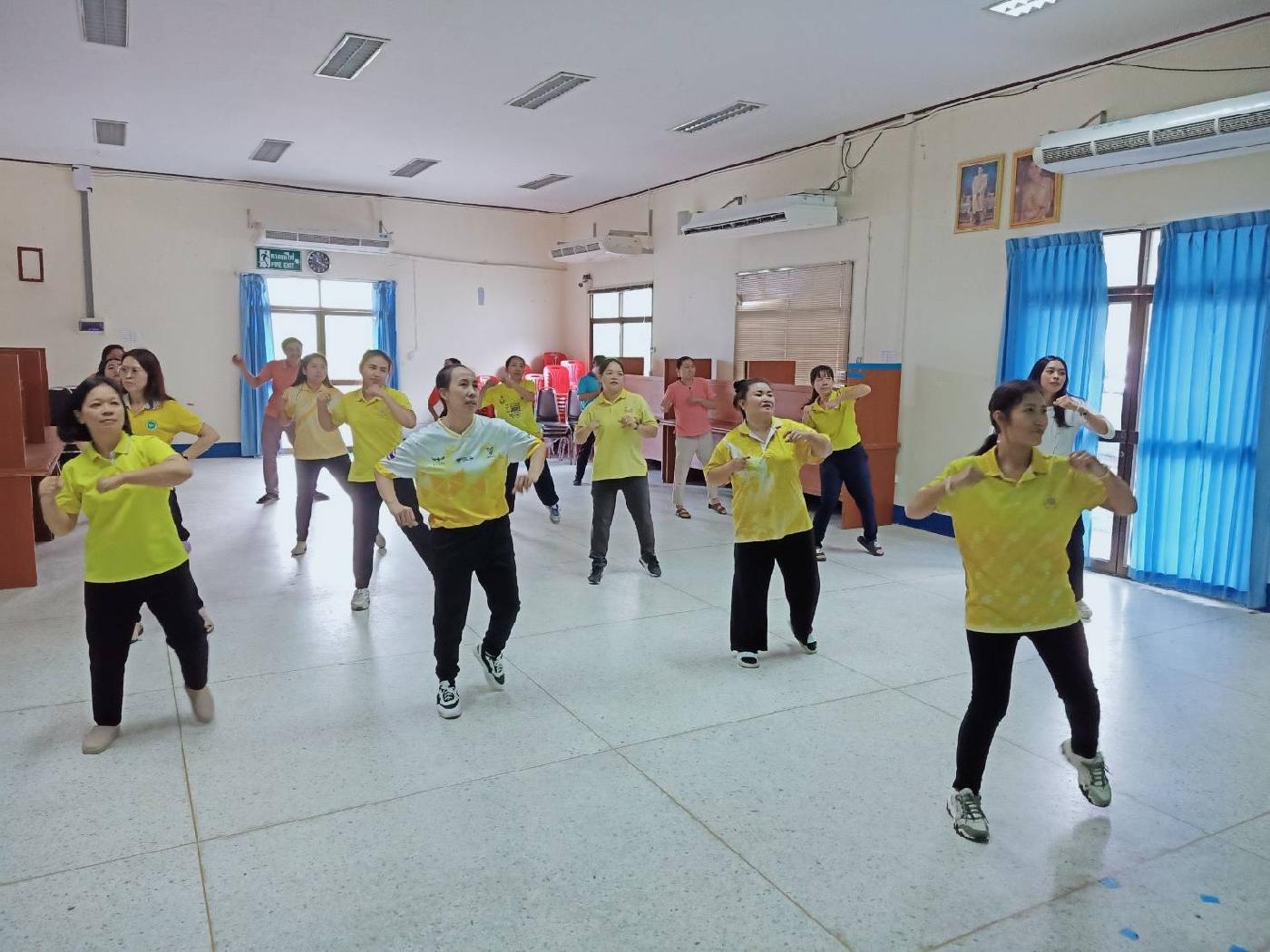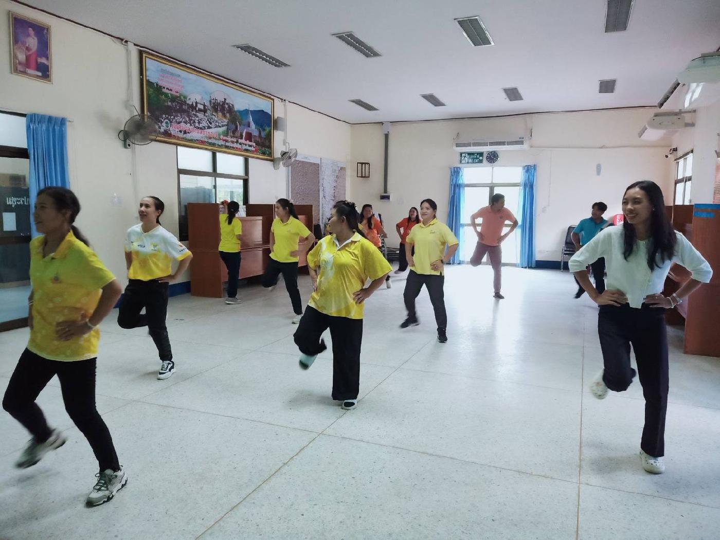 โดยมีพนักงานเทศบาลตำบลยางฮอมร่วมกันขับเคลื่อนและออกกำลังกาย ณ ห้องประชุมเทศาลตำบลยางฮอม