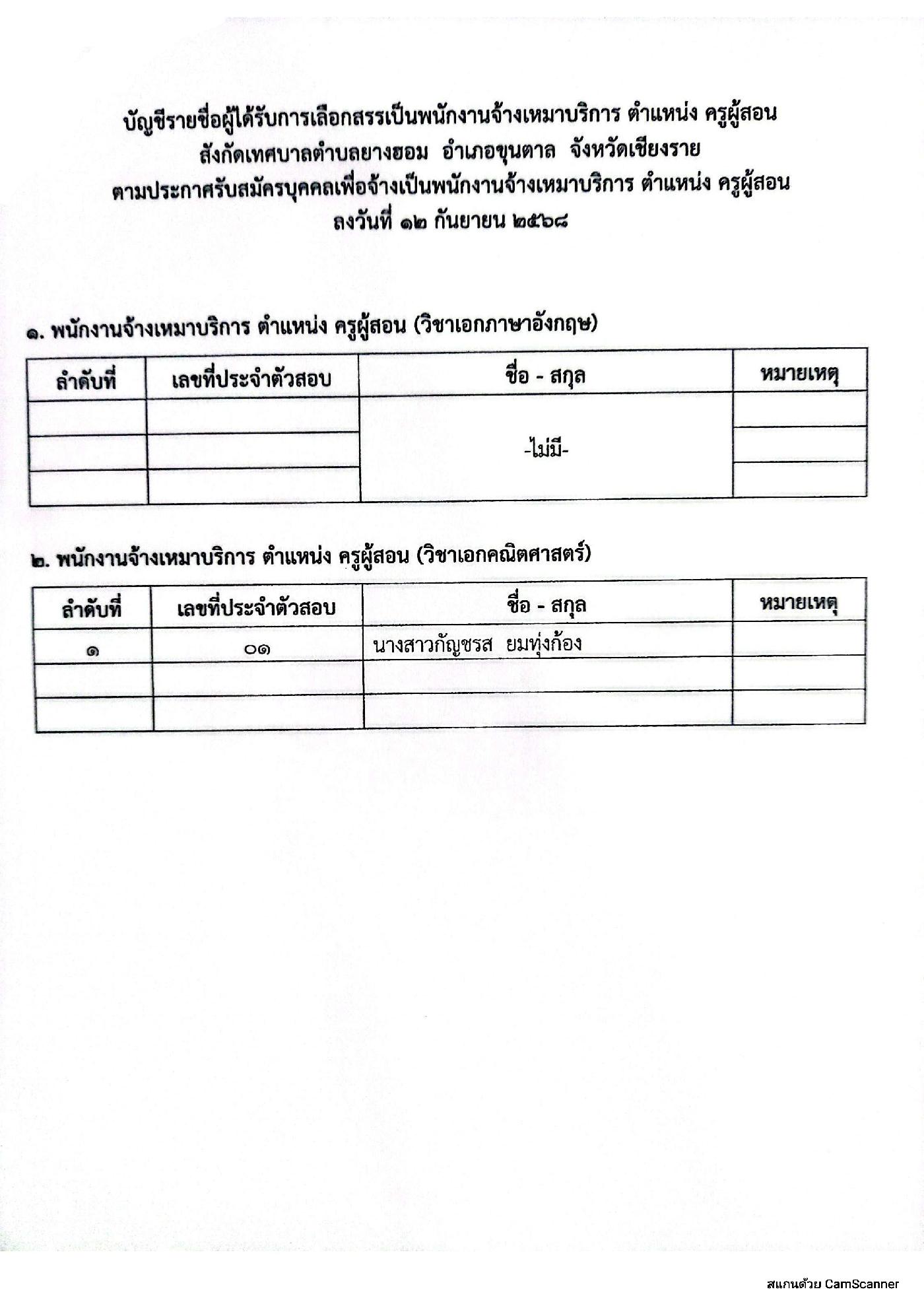 ตำแหน่ง ครูผู้สอน ของเทศบาลตำบลยางฮอม