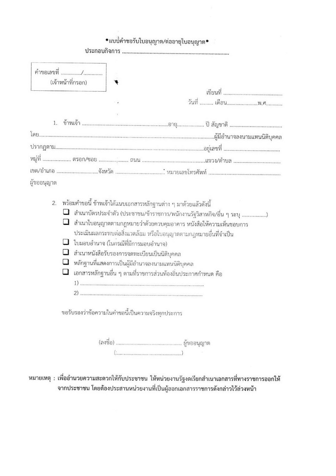 แบบคำขอรับใบอนุญาต/ต่ออายุใบอนุญาต ประกอบกิจการ......