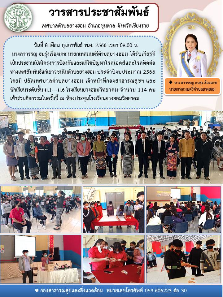 โครงการป้องกันและแก้ไขปัญหาโรคเอดส์ปละโรคติดต่อทางเพศสัมพันธ์แก่เยาวชนในตำบลยางฮอม ประจำปีงบประมาณ 2566