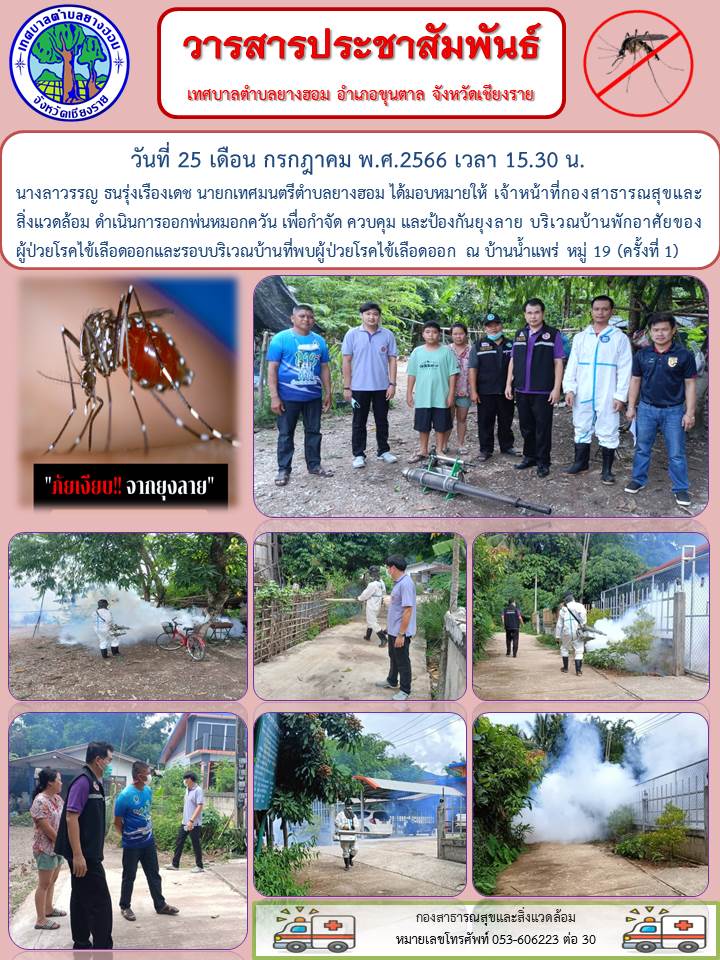 นางลาวรรญ ธนรุ่งเรืองเดช นายกเทศมนตรีตำบลยางฮอม ได้มอบหมายให้ เจ้าหน้าที่กองสาธารณสุขและสิ่งแวดล้อม ดำเนินการออกหินหมอกควัน
